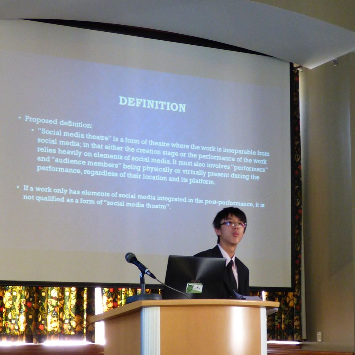 Presenter at 2016 UBC Arts Undergrad Society Conference and 2016 UBC Multidisciplinary Undergraduate Research Conference with my research paper “Social Media Theatre: A New Form of Theatrical Presentation” (supported by Dr. Diane Burgess).